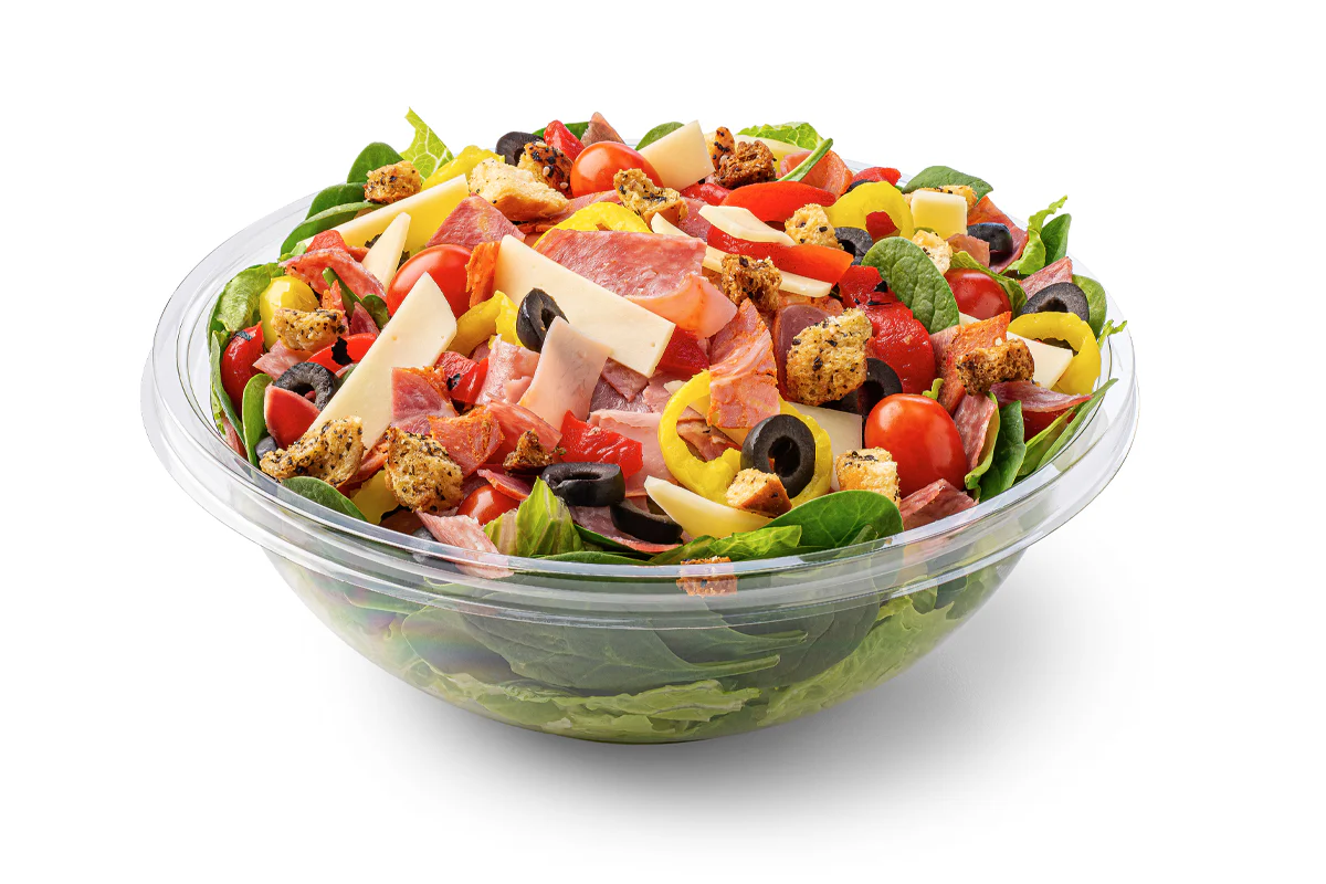 Genoa salami, capicola & spicy ham, grape tomatoes, roasted red & banana peppers, black olives and provolone with your choice of dressing.