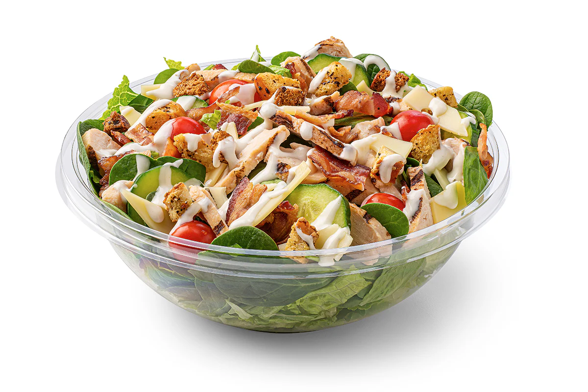 Chilled chicken, bacon, grape tomatoes, cucumbers & Swiss with creamy ranch.