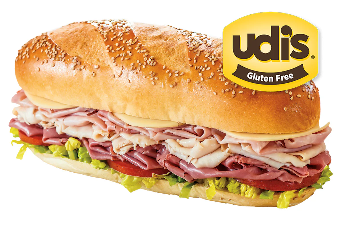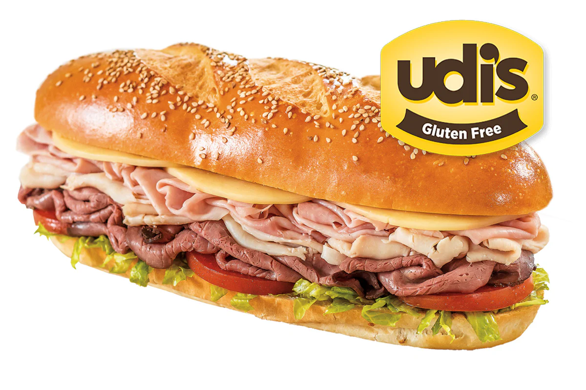 Start with three deli meats and add all your favorite condiments and toppings on a 10" GLUTEN FREE ROLL. Customize it to make it your own!