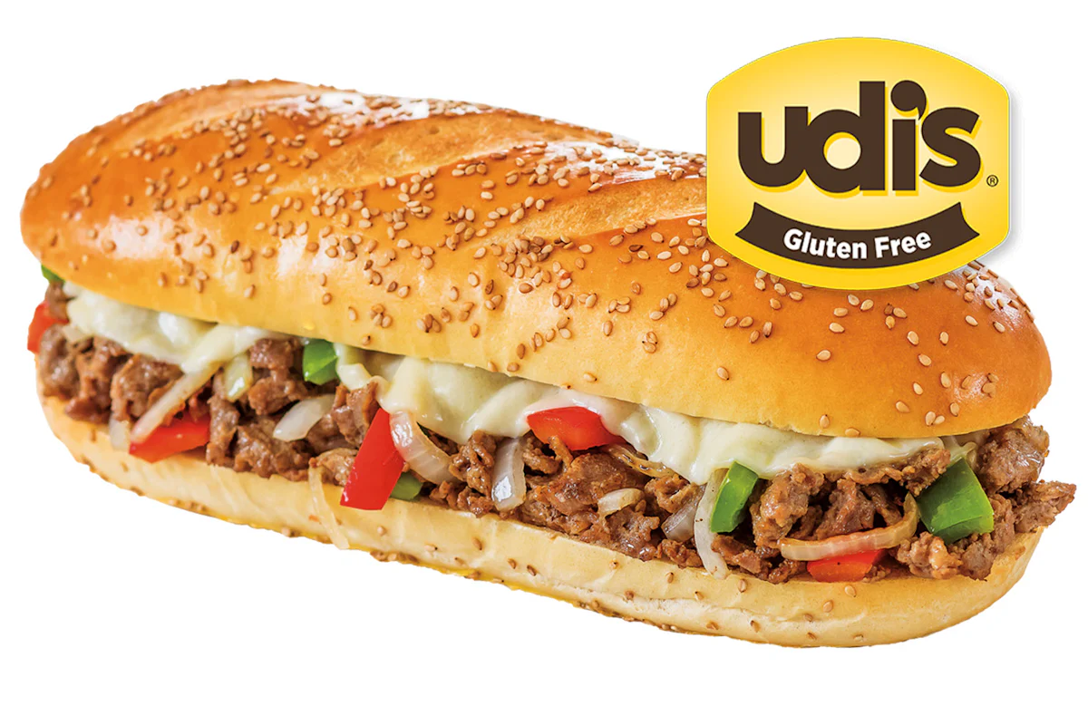 Grilled steak with grilled sweet peppers, onions, mayonnaise and American cheese on a 10" GLUTEN FREE ROLL. Customize it to make it your own!