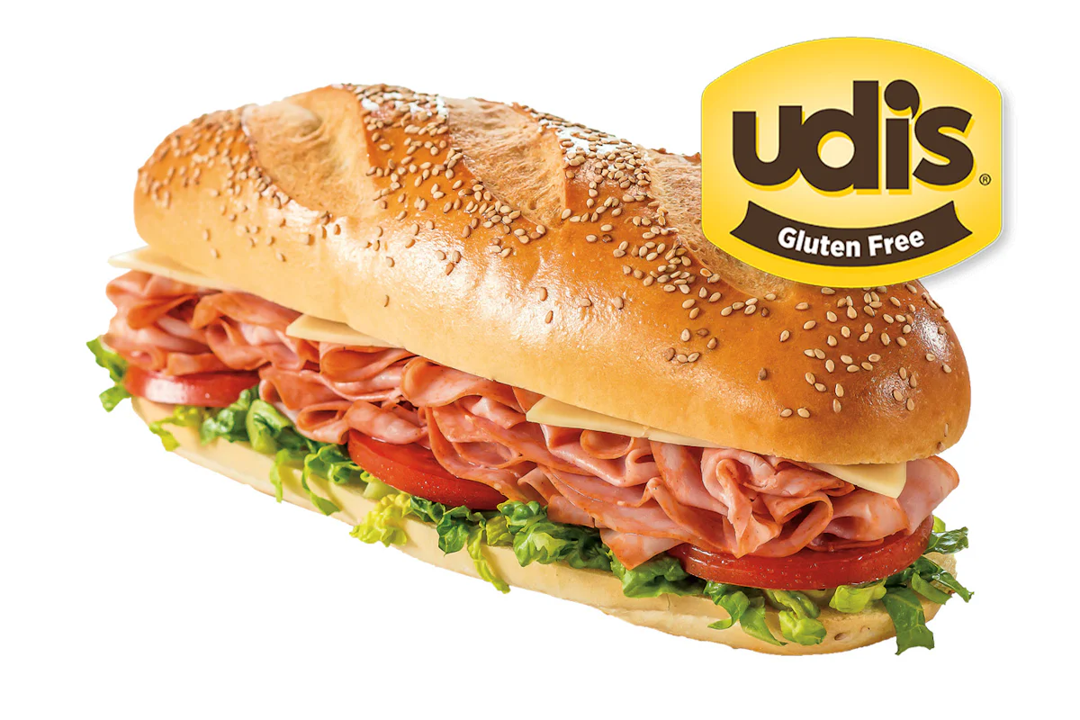 Start with two deli meats and add all your favorite condiments and toppings on a 10" GLUTEN FREE ROLL. Customize it to make it your own!