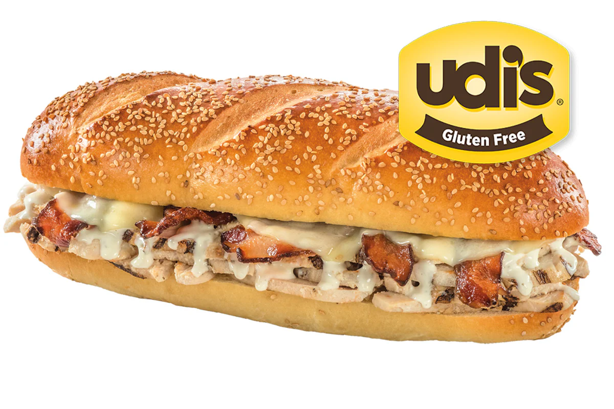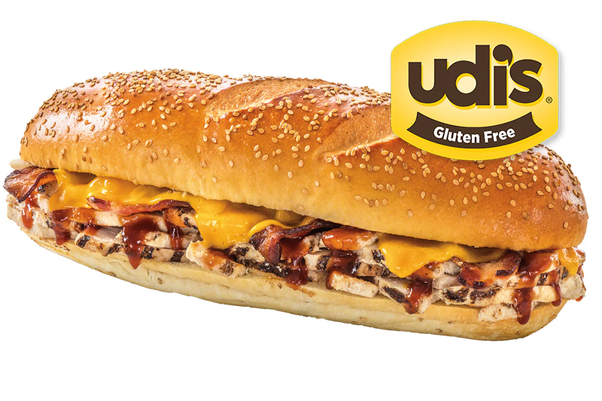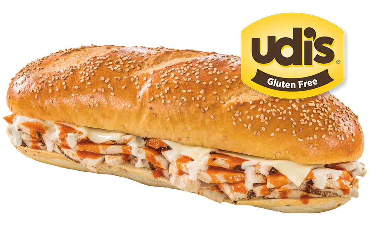 Grilled chicken and crispy bacon smothered in BBQ sauce with melted cheddar cheese on a 10" GLUTEN FREE ROLL. Customize it to make it your own!