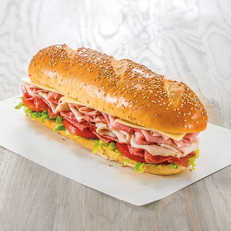 Turkey, ham & Genoa salami with lettuce, tomato, onion, yellow mustard and mozzarella cheese with DiBella’s Famous Oil Dressing on a fresh-baked sesame roll. Customize it to make it your own!