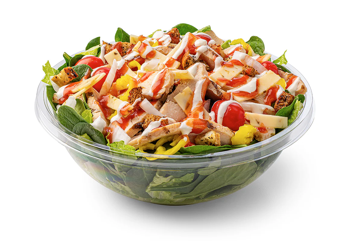 Chilled chicken, grape tomatoes, onion, banana peppers, pepper jack, Buffalo sauce & creamy blue cheese.