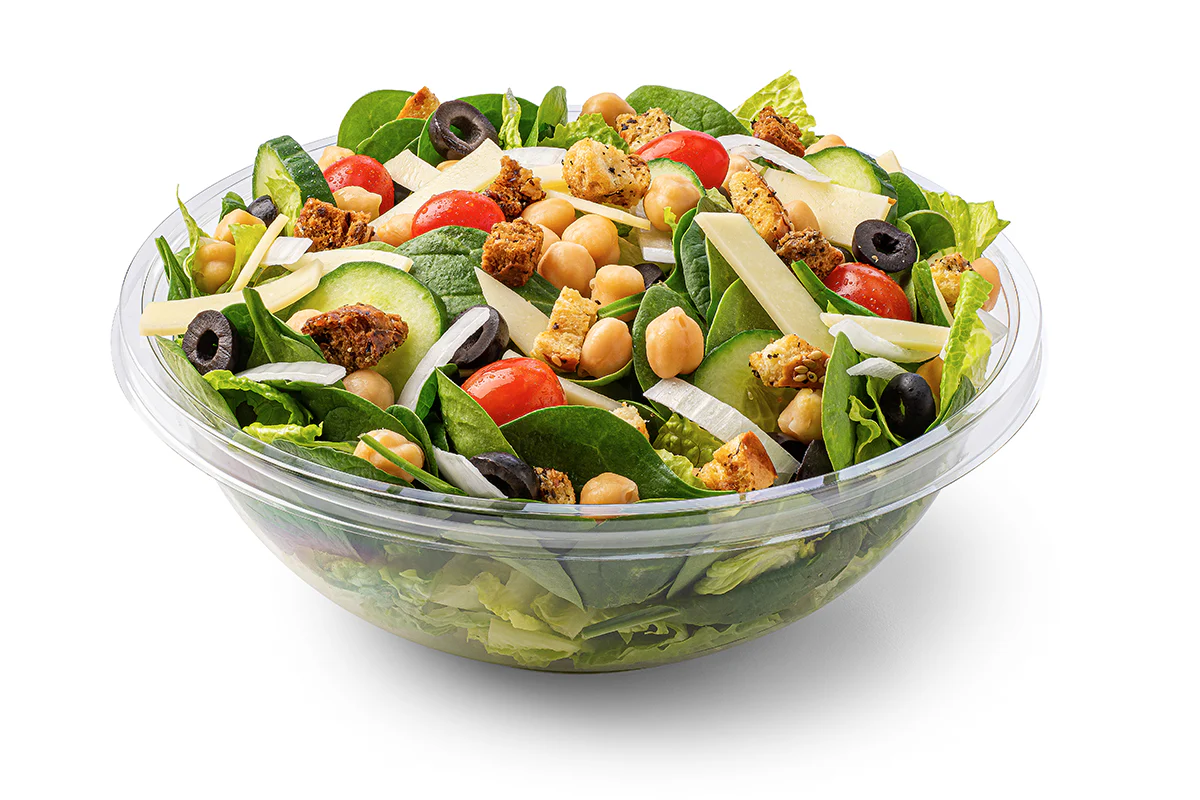 Grape tomatoes, onion, cucumbers, black olives, chickpeas & provolone with your choice of dressing.