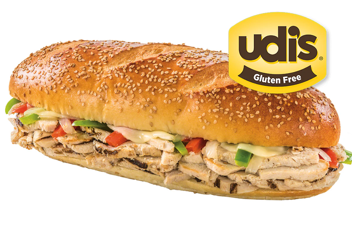 Grilled chicken tossed with grilled peppers and onions with mayonnaise and melted American cheese on a 10" GLUTEN FREE ROLL. Customize it to make it your own!