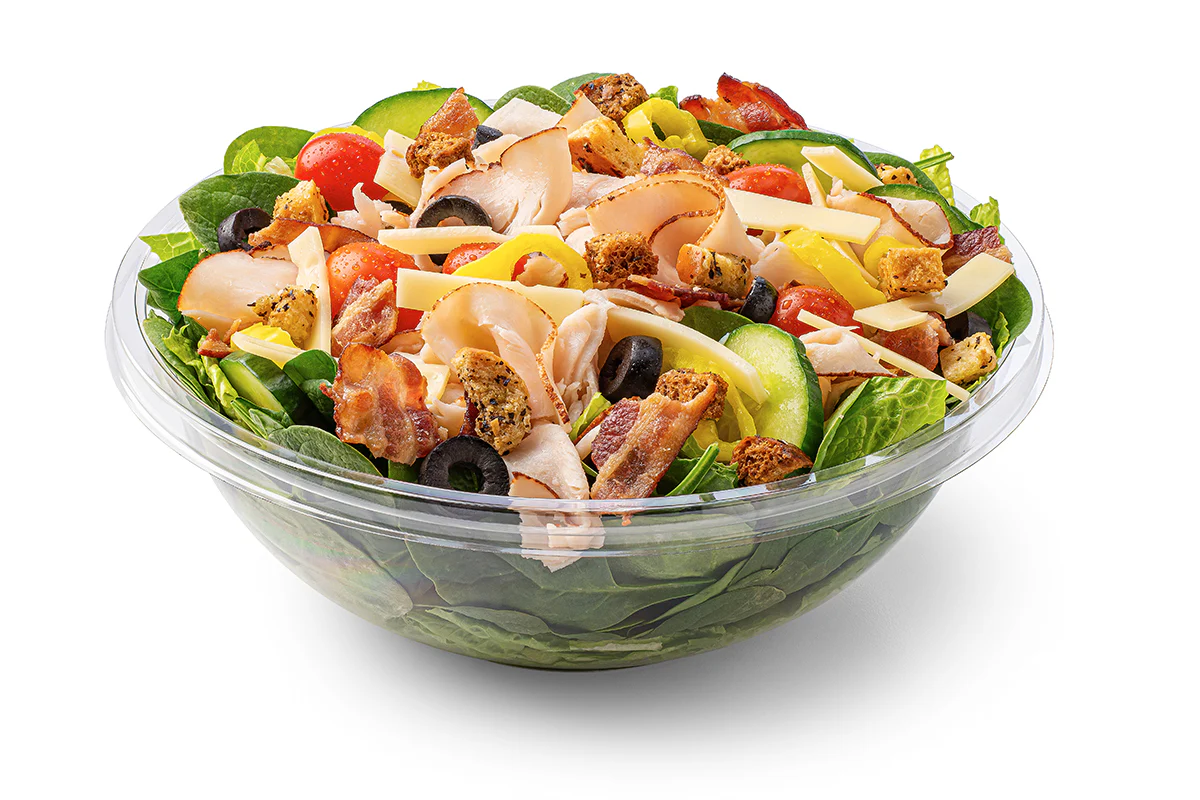 Turkey, bacon, grape tomatoes, cucumbers, banana peppers & black olives with your choice of dressing.