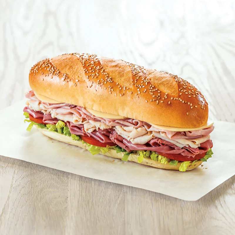 Roast beef, turkey & ham with lettuce, tomato, onion, honey mustard and American cheese with DiBella’s Famous Oil Dressing on a fresh-baked sesame roll. Customize it to make it your own!