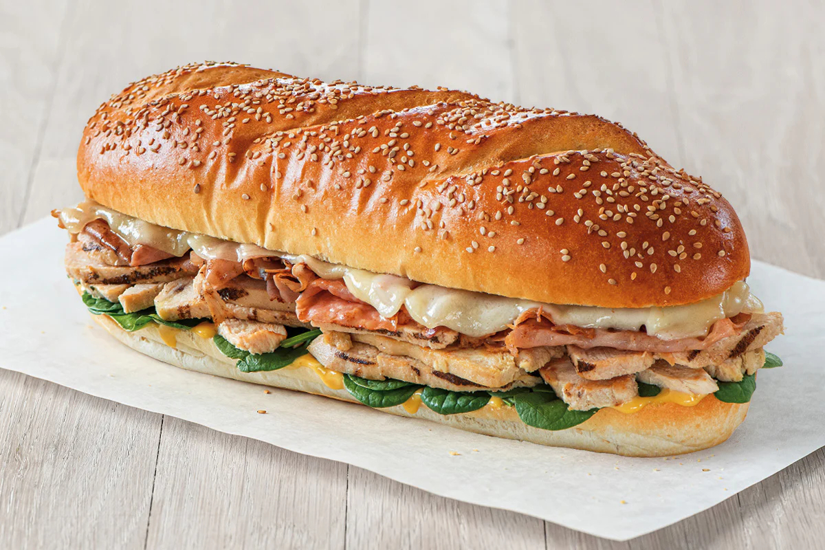 The famous dish, reimagined! Grilled chicken and ham, spinach and melted Swiss – piled high on your favorite, fresh-baked Italian sub roll with Dijon honey mustard and your choice of toppings.